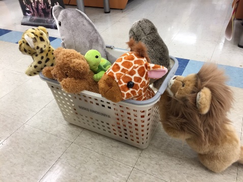 絵本の読み聞かせを行った後,ぬいぐるみを紀伊國屋書店 クレド岡山店でお預かりします。